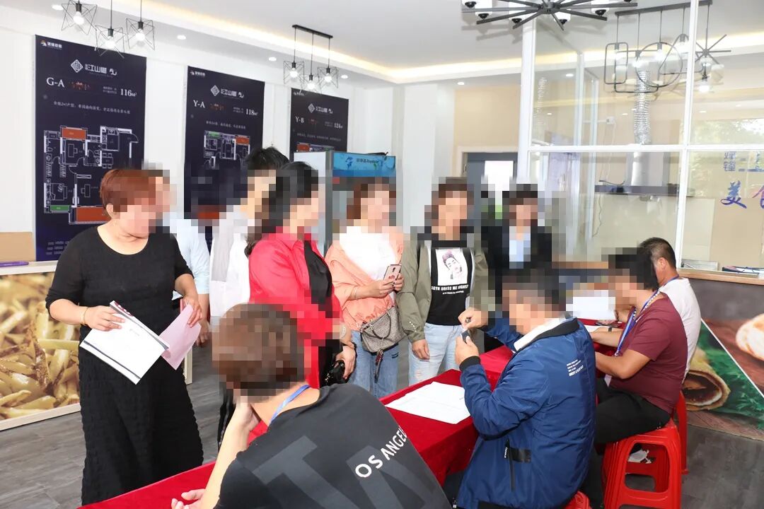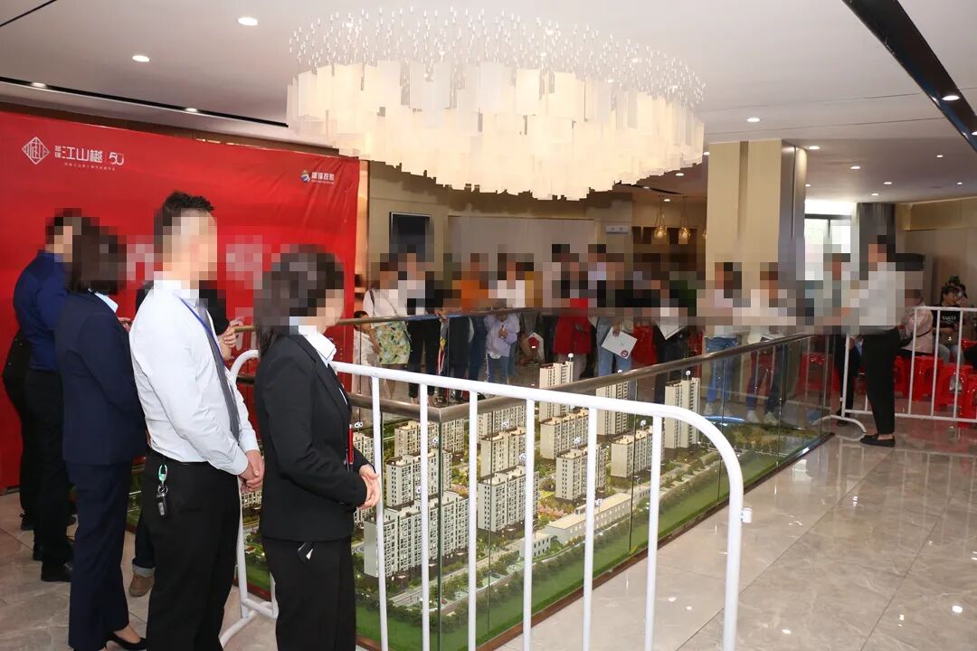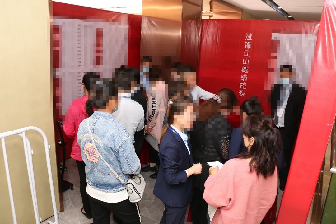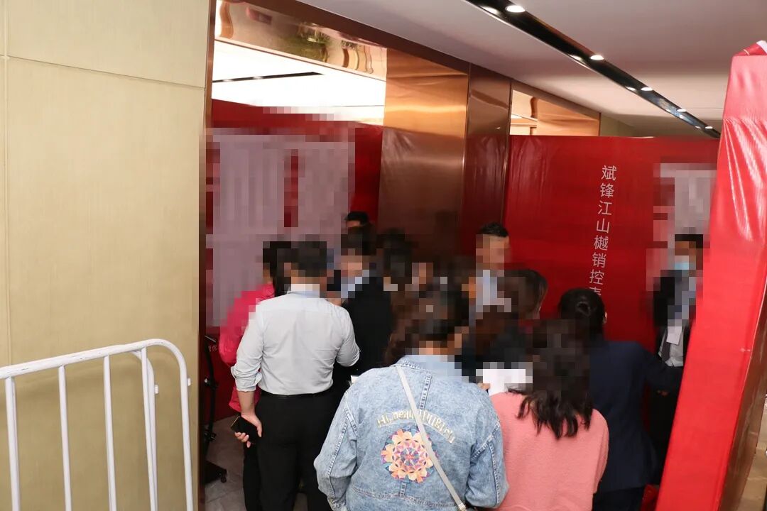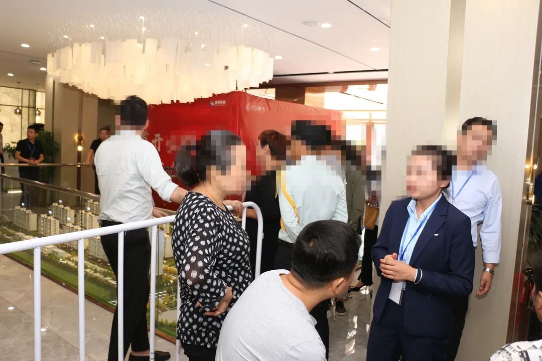 当天上午,许多客户早早到场签到,还未正式开盘,等候区已被热情高涨的客户挤得水泄不通,场面十分火爆。