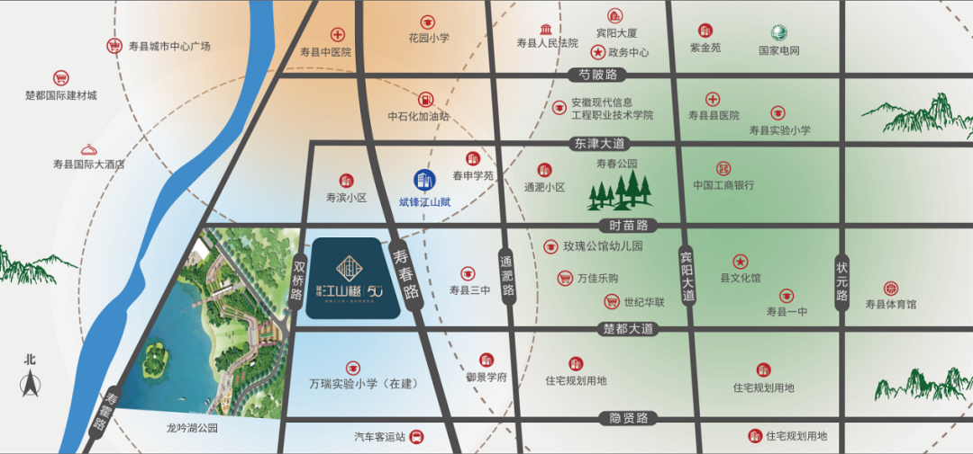 斌锋江山樾 作为斌锋寿县第二子 地处寿县楚都大道与双桥路交汇处 项目周边交通网密布 两条城市主干道贯穿区域 5分钟直达城南商业街 8分钟可达老城区十字街口商业中心 项目周边 寿县三中、寿县一中、寿春中学、花园小学、实验小学 等众多名校林立 与龙吟湖公园隔路相望 真正意义的观湖观景房 项目由3栋高层,12栋洋房组成 共计905套房源 其中231套高层,674套洋房 洋房户型有118㎡,124㎡,130㎡ 高层户型有97㎡,105㎡,116㎡ 共有6种户型供客户选择 寿州人物 品鉴江山 斌锋大作 樾系顶级洋房社群倾力巨献! 建筑面积约97-130㎡湖景高层/宽境洋房 全城火爆预约中! 早预约 多优惠! 项目地址: 寿县楚都大道与双桥路交汇处 营销中心地址: 寿县寿春南路与时苗路交汇处 扫一扫,关注我
